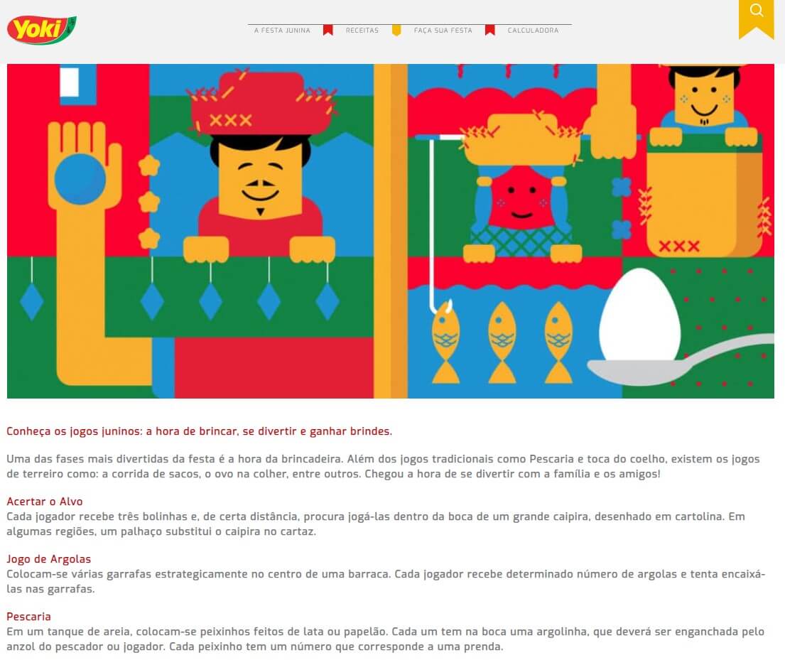 Conteúdo especial Festa Junina desenvolvido para o site da Yoki.